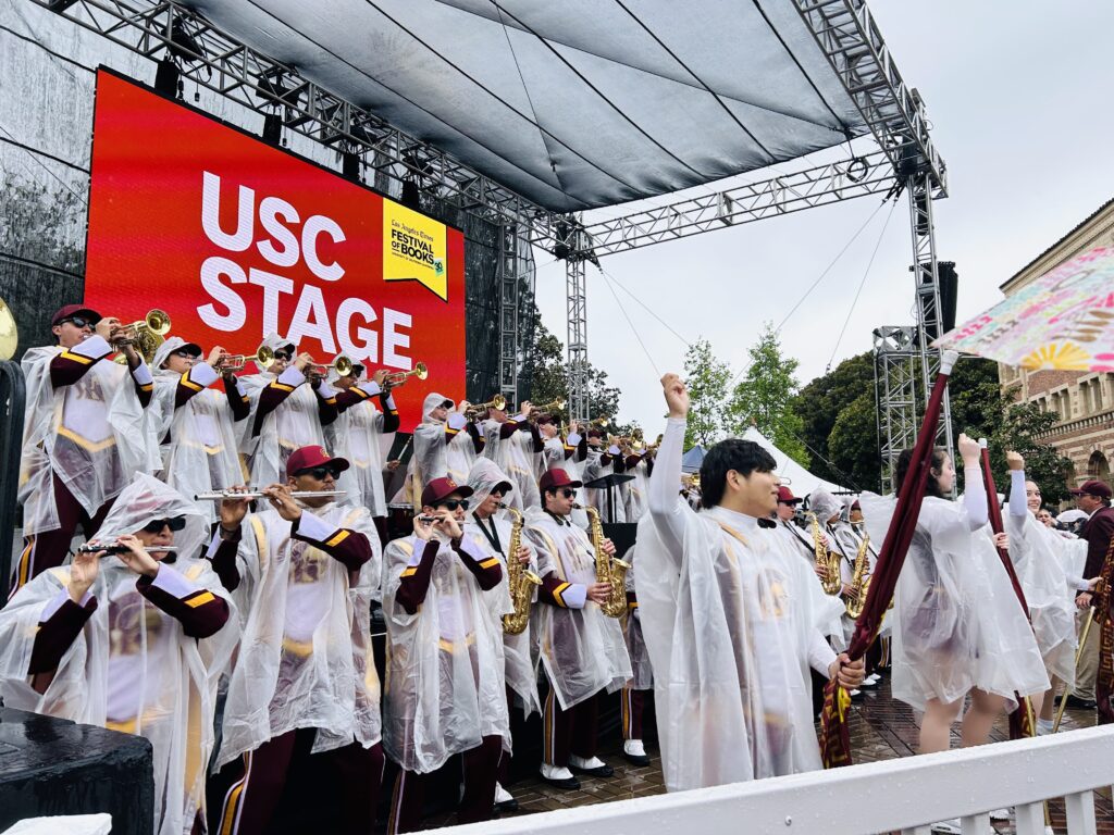 Although there was a lot of rain (and lightning and thunder) at today’s book festival, that didn’t deter a HUGE crowd of book lovers as we clutched our umbrellas and heavy bags of books! I also was excited to see the USC Trojan marching band. This Gen Xer LOVED it when they played the famous “Tusk” song by Fleetwood Mac! (Check out the original video with Fleetwood Mac here: https://youtu.be/ATMR5ettHz8?si=AMuStBOqBhZrtGdS